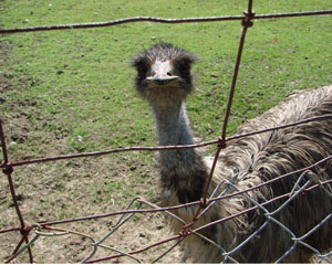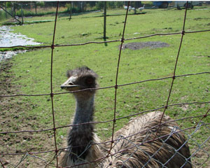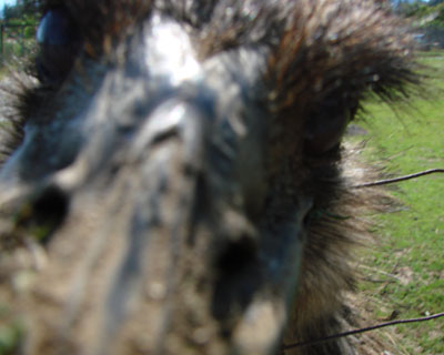 As the emu got closer, I backed away to capture more of the feather pillow body and I tried to frame the curious face with the wire.